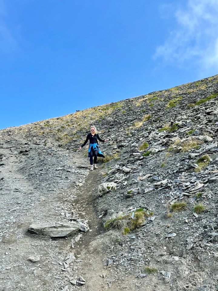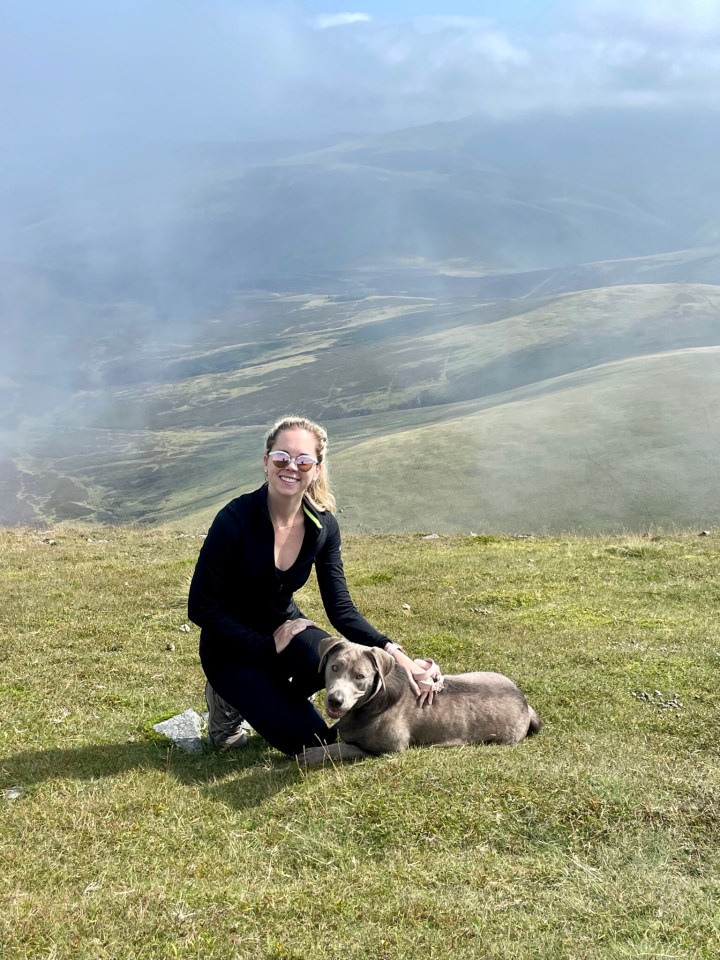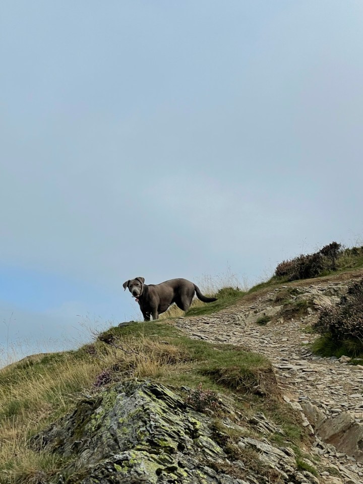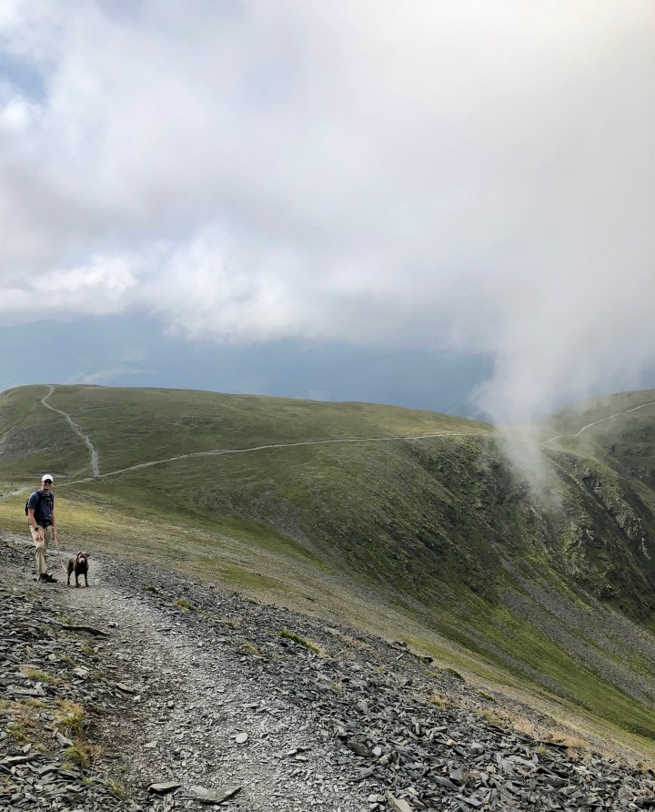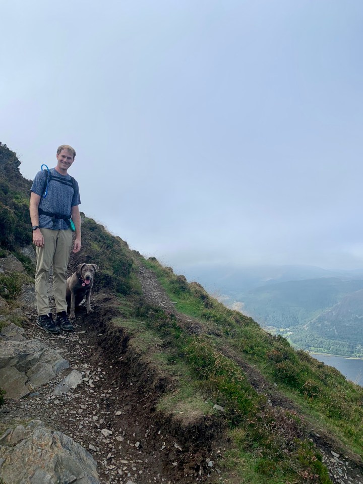 - Skiddaw: Our hotel was located at the base of Skiddaw, which at 3,054 feet is one of the highest mountains in England (the tallest mountain, also in the Lake District, is just 155 feet higher). It was advertised to us as “medium” difficulty and very popular because of its panoramic views, so Andy and I weren’t expecting anything very challenging compared to some of the hikes we’ve done in Montana and Wyoming…we were wrong. The side of the mountain we were staying on happened to be the steepest part, with an incline of 900+ meters in just 3 kilometers (AKA a 30% gradient), which made for a very tough start to the 7.5-mile hike. Fortunately, it got a bit better after the initial incline, and we did indeed get some beautiful panoramic views from the top. Andy and I were exhausted after our 4-hour hike, but Lily literally ran in circles around us up and down the entire time and seemed so happy that she probably would have done it twice in a row.