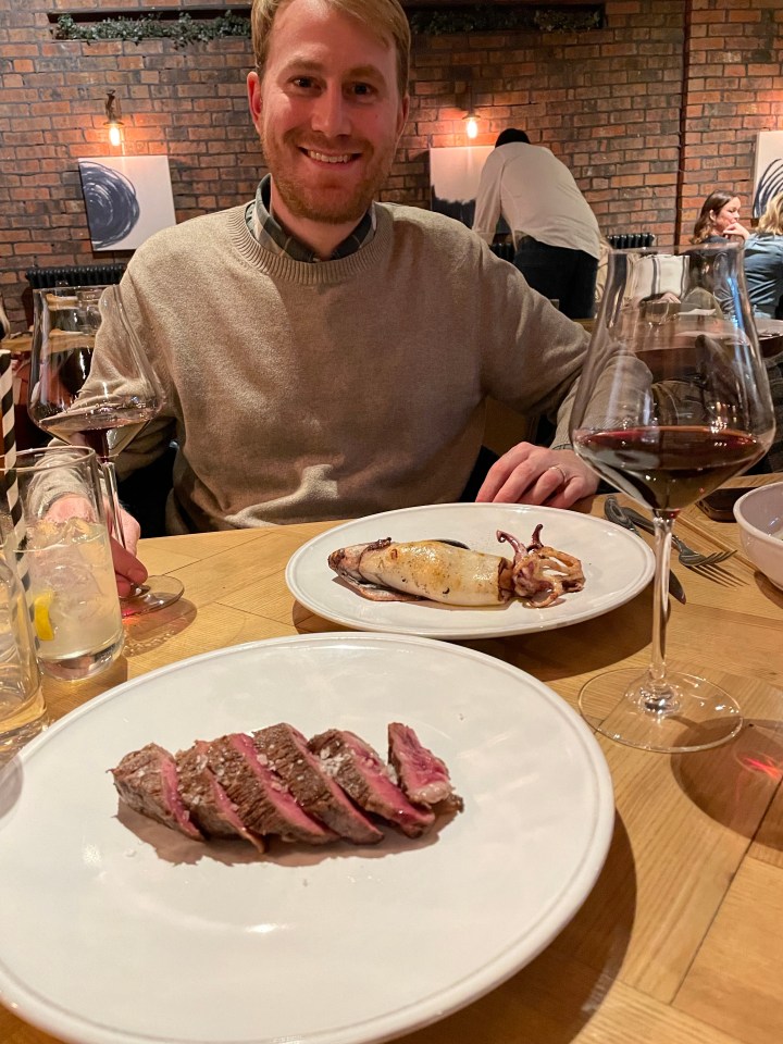 - Asador 44: I tried to find an authentic, upscale Welsh restaurant for dinner…and didn’t come up with anything. Instead, we had a lovely meal at this warm, vibey Spanish grill house with an amazing wine selection and a menu featuring traditional Spanish dishes with high-quality fish, meat, cheese, and vegetables.