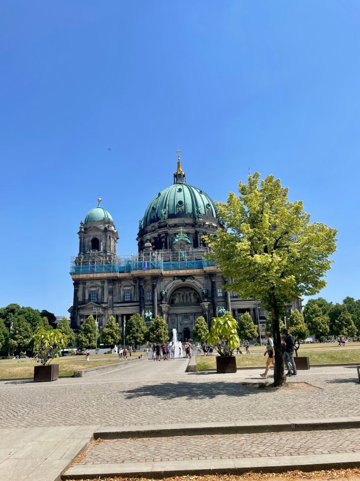 - Museumsinsel (Museum Island): The UNESCO World Heritage Site in the historic heart of Berlin contains one of the most important and impressive museum complexes in all of Europe. Prussian kings oversaw the construction of a complex dedicated to art and science on the northern part of a small island in the Spree River from 1830-1930, and the collections of art and archeology housed in the museums are now maintained by the Berlin State Museums. The site officially consists of the Altes Museum (Old Museum) containing the Collection of Classical Antiquities; the Neues Museum (New Museum) containing the Egyptian and papyrus collections, including the famous bust of Queen Nefertiti; the Alte Nationalgalerie (Old National Gallery) containing one of the largest collections of 19th-century sculptures and paintings in Germany; the Bode Museum containing sculpture collections and Byzantine art; and the Pergamonmuseum containing Middle Eastern and Islamic art, as well as the Antiquities Collection. We didn’t go inside any of the museums, but it was still really cool to walk around the island, which also includes the stunning Berliner Dom (Berlin Cathedral).