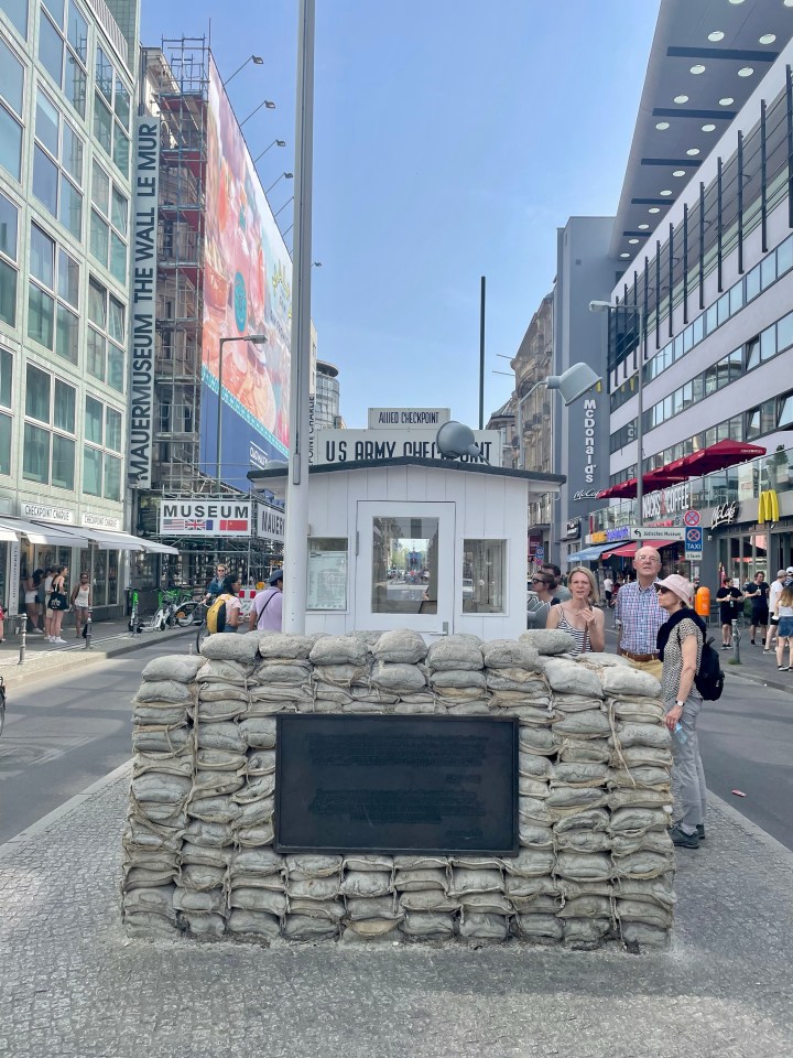 - Checkpoint Charlie: This might be a hot take, but I could have really done without visiting Checkpoint Charlie, which served as the single crossing point between East Berlin and West Berlin for members of the Allied forces during the Cold War. As the most visible Berlin Wall checkpoint, it quickly became a popular and well-known symbol of the Cold War, especially after Soviet and American tanks briefly faced each other at the location during the Berlin Crisis of 1961 and John F. Kennedy visited in 1963. Although the historic value of the site (which now includes a copy of the guard house and the sign that once marked the border crossing) was very easy to appreciate, the present-day area was the most crowded and touristy place we went to while in Berlin. It was overrun with chain restaurants and souvenir shops that seemed to focus a lot more on U.S. involvement in the Cold War than anything else, and the Checkpoint Charlie Museum and BlackBox Cold War Exhibition weren’t terribly interesting compared to the other museums in Berlin.