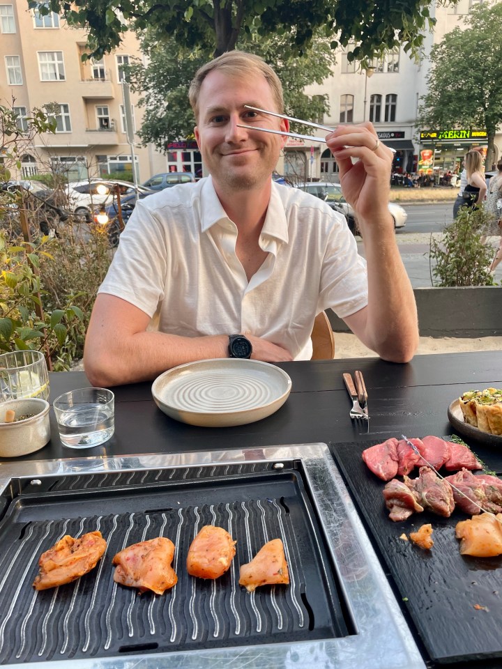 - Fes Turkish BBQ: Its large population of Turkish immigrants means that Berlin is absolutely teeming with kebab shops and Turkish restaurants, which was particularly exciting for Andy. We had dinner at one of the newer Turkish dining concepts in the city, which has Korean-style in-table barbeque grills where you can grill your own meats and vegetables. Despite the barbeque focus, the mezze and desserts we had at Fes were the real standouts for me—especially the beetroot hummus and the Turkish ice cream with apricots and cinnamon butter.