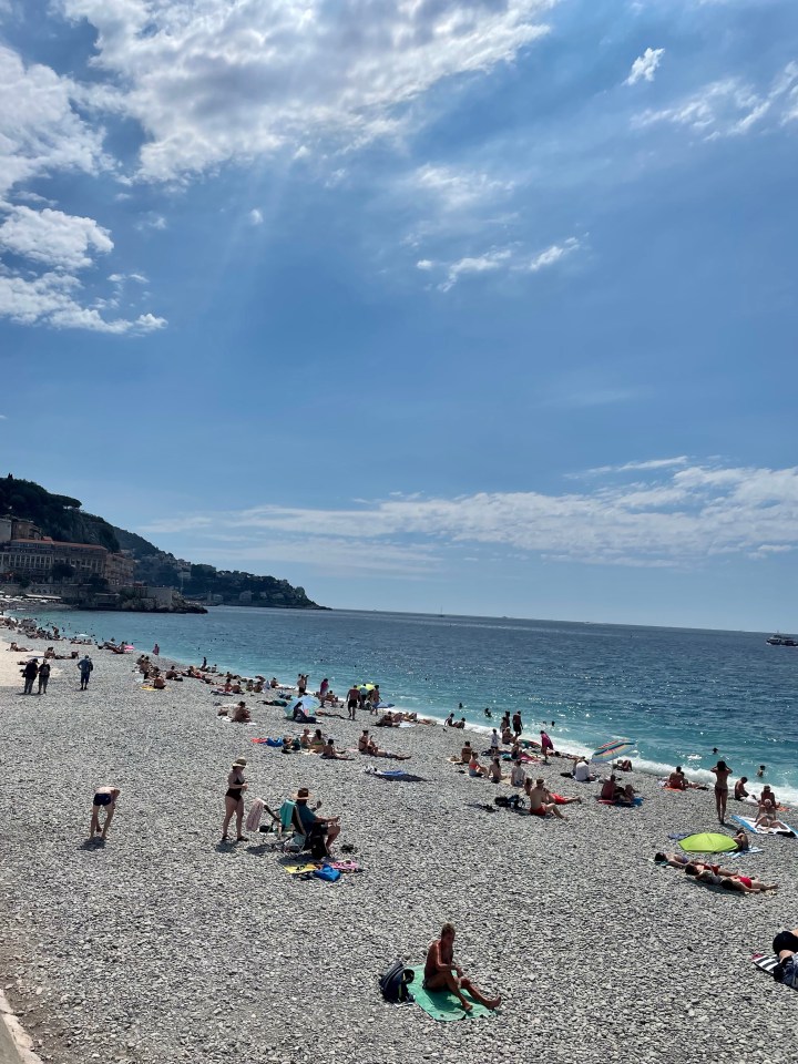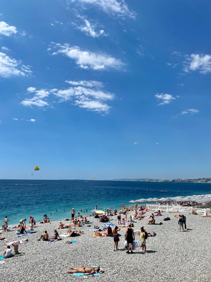 - Promenade des Anglais: This paved promenade running for the entire four-mile stretch of the Baie des Anges is one of the most iconic stretches of seafront France, and is particularly famous for the blue-and-white beach chairs dotting its beaches. We walked down to the Plage Publique des Ponchettes at the Quai des États-Unis end of “La Prom” and it was really tough to leave such a beautiful beach, especially on such a lovely summer day.