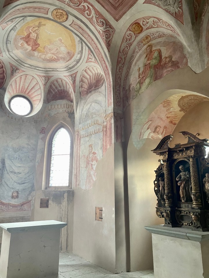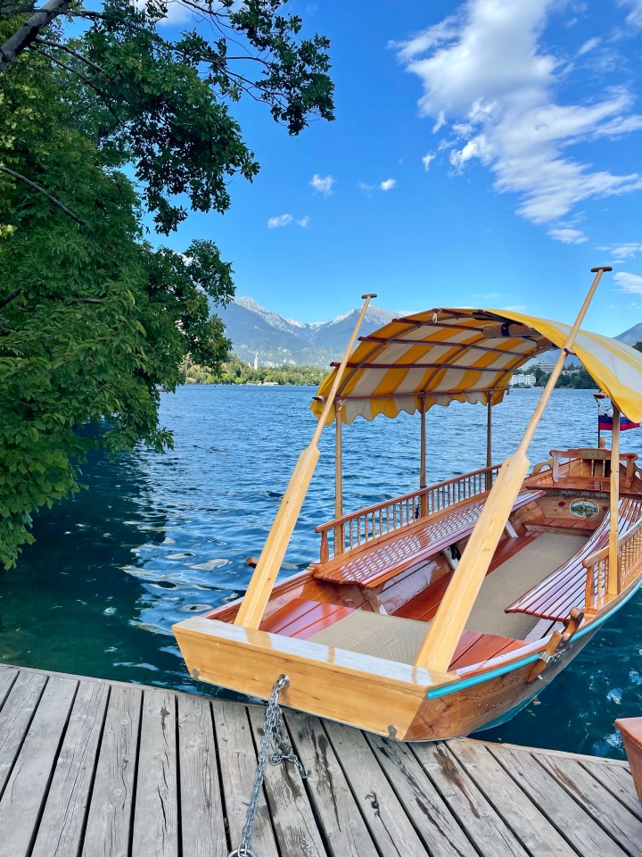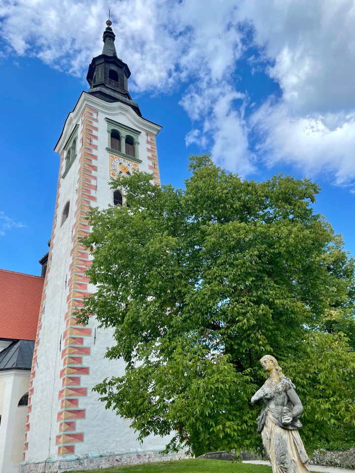 - Blejski Otok (Bled Island): The lake surrounds a tiny and picturesque island with a pilgrimage church dedicated to the Assumption of Mary, and the traditional way to access the island is on a flat-bottomed wooden boat with colorful awnings known as a pletna that is still made by hand and operated by oarsmen descended directly from 22 local families that Maria Theresa of Austria granted exclusive rights to ferry religious pilgrims across Lake Bled in 1740. Since the only other ways to access the island were swimming or rowing our own boat, we opted to take a pletna, which was a lovely way to soak up the beauty of the area and only took ~10 minutes to reach the island. A Baroque stairway leads from the pier up to the 17th-century church and it is traditionally considered good luck for a groom to carry his bride up the 99 stone steps (!!) on the day of their wedding before ringing the bell and making a wish inside the church. We actually were able to see two couples celebrate this tradition while we were on the island, including a lovely older man and his wife who were at least in their 60s and attending the wedding taking place that day.