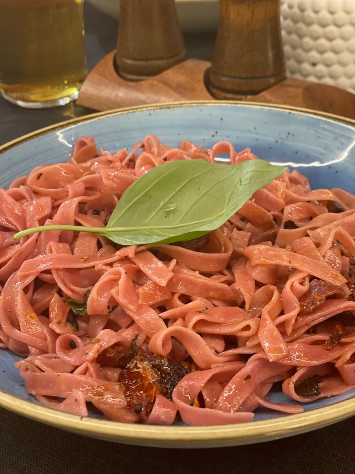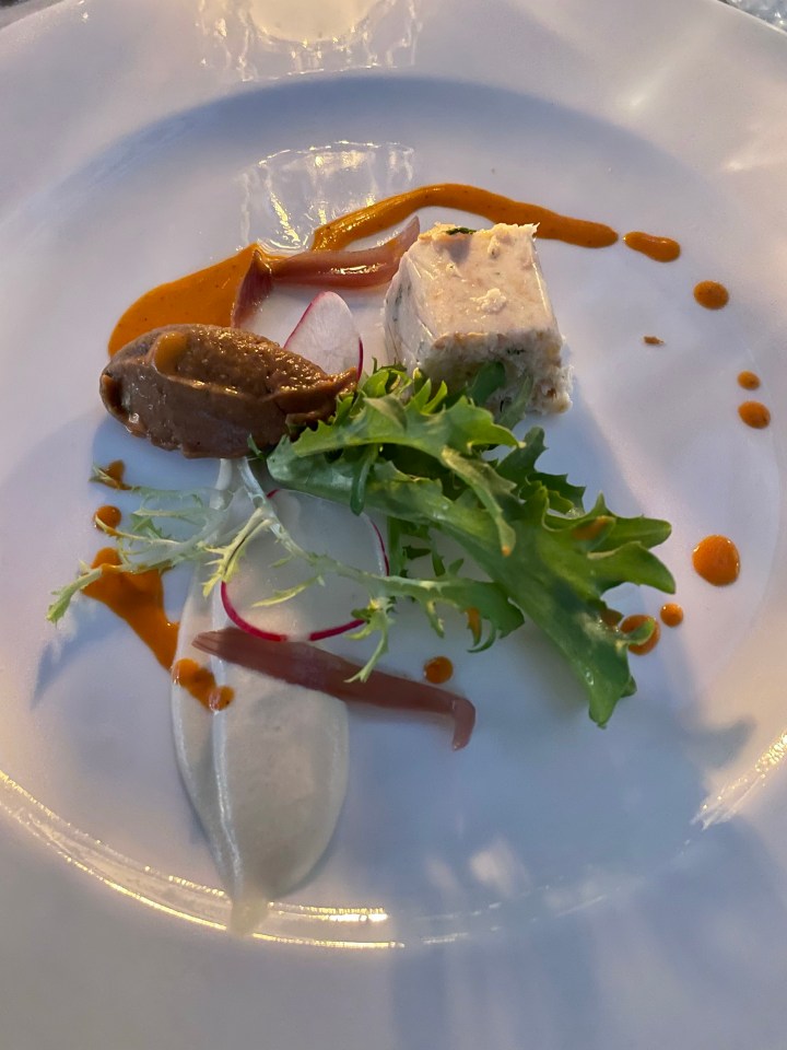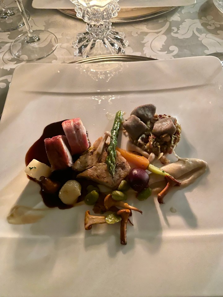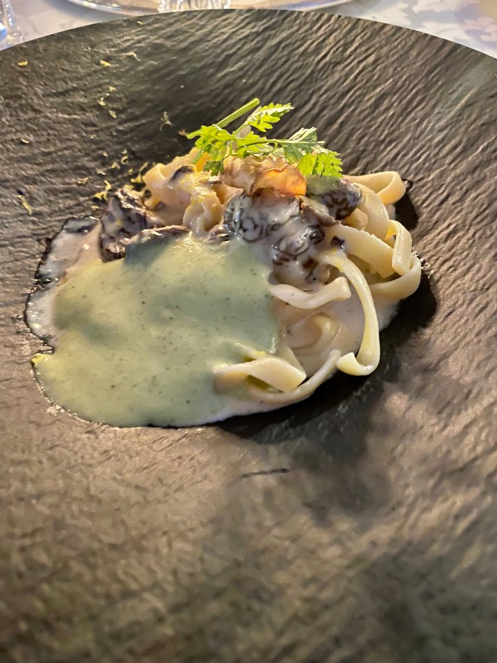 - Restavracija Julijana: Dinner at Restavracija Julijana, a beautiful waterfront restaurant at the elegant Grand Hotel Toplice, was definitely the culinary highlight of our trip. The tiny restaurant only seats ~20 guests on a terrace overlooking the lake and it’s well known for its use of high-quality local ingredients. We both had the “Gorenjska selection” tasting menu, which exclusively featured regional ingredients and specialties like homemade tagliatelle with morel mushrooms, trout soup with apples and dried pear sorbet, and bacon-wrapped rabbit with buckwheat gnocchi. Everything we ate and drank was exquisite and the private terrace was really quite romantic, especially as the sun set over the lake.