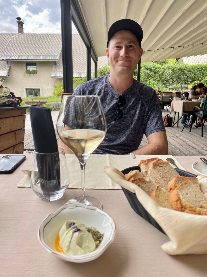 - Restaurant Triglav Bohinj: We were absolutely ravenous after hiking at Mostnica Gorge and probably would have eaten anywhere, but we somehow lucked out by randomly stumbling upon this fantastic restaurant and wine bar overlooking Lake Bohinj. Restaurant Triglav Bohinj follows the guidelines of the regional “Bohinjsko” brand certification, which guarantees the authenticity of top-quality local products and services operating in a sustainable manner. Our waiter was also the restaurant’s sommelier and he provided fantastic recommendations for local wines to pair with our incredibly delicious and creative lunch.