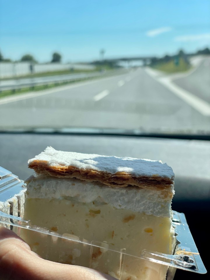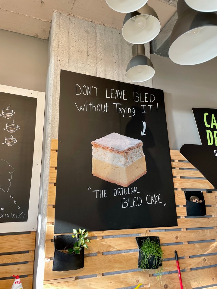 - Kavarna Park: The Hotel Park cake shop on the shores of Lake Bled is recognized as the official birthplace of Slovenian kremna rezina, a cream cake made with layers of puff pastry, custard, whipped cream, and powdered sugar and served in 7×7 cm slices. The town is VERY proud of the decadent dessert commonly referred to as kremšnita, and it’s definitely one of Bled’s (and perhaps Slovenia’s) most famous traditional dishes. I personally found it way too rich for my tastes, but I’d still recommend trying it while in town.