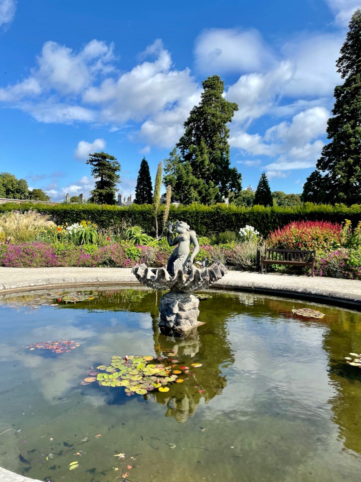 - Powerscourt Estate & Gardens: One of the most notable points of interest in County Wicklow is a large country estate noted for its beautiful stone manor and 40+ acres of carefully landscaped gardens. This was one of the first places our guide brought us and it really set the stage for the rest of our day. Although a fire destroyed most of the interior of the 18th-century manor house in the 1970s, the exterior views of the house overlooking its incredible gardens were really the main attraction. We really enjoyed spending the morning walking through the different ornamental gardens, which included Japanese gardens, an Italian garden, many walled gardens and lakes, and a lovely garden of mixed wildflowers.