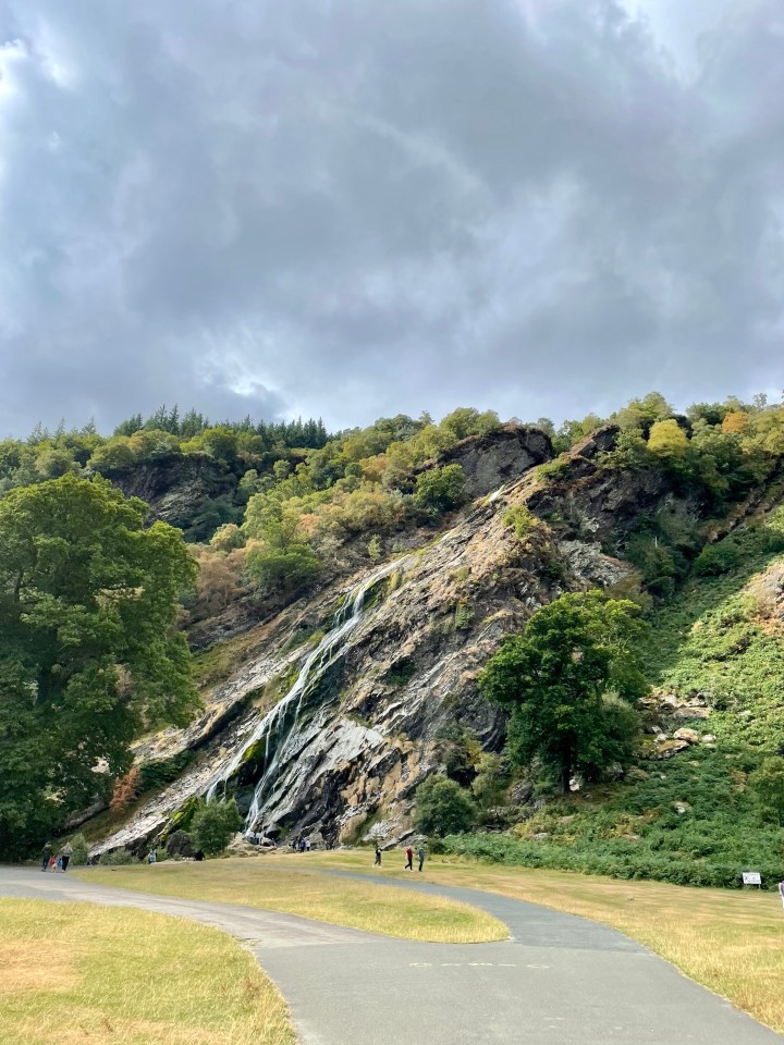- Powerscourt Waterfall: The second highest waterfall in Ireland lies at the base of the Glensoulan Valley within the Powerscourt Estate, although a separate entrance fee was required to visit. The nearly 400-foot-tall waterfall was beautiful, with an interesting horsetail-fan pattern of water flowing over the steep back wall, and the surrounding recreational area was just as lovely.