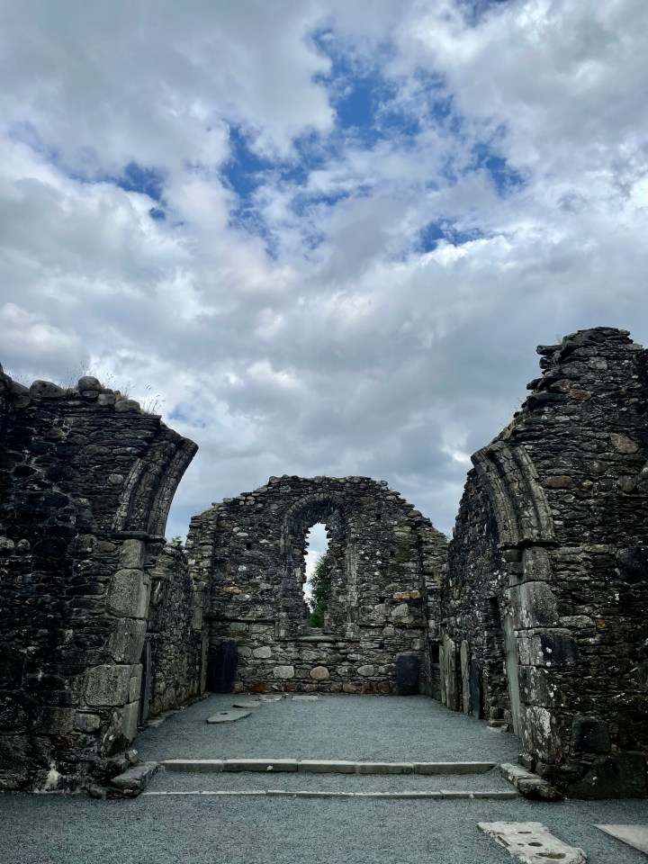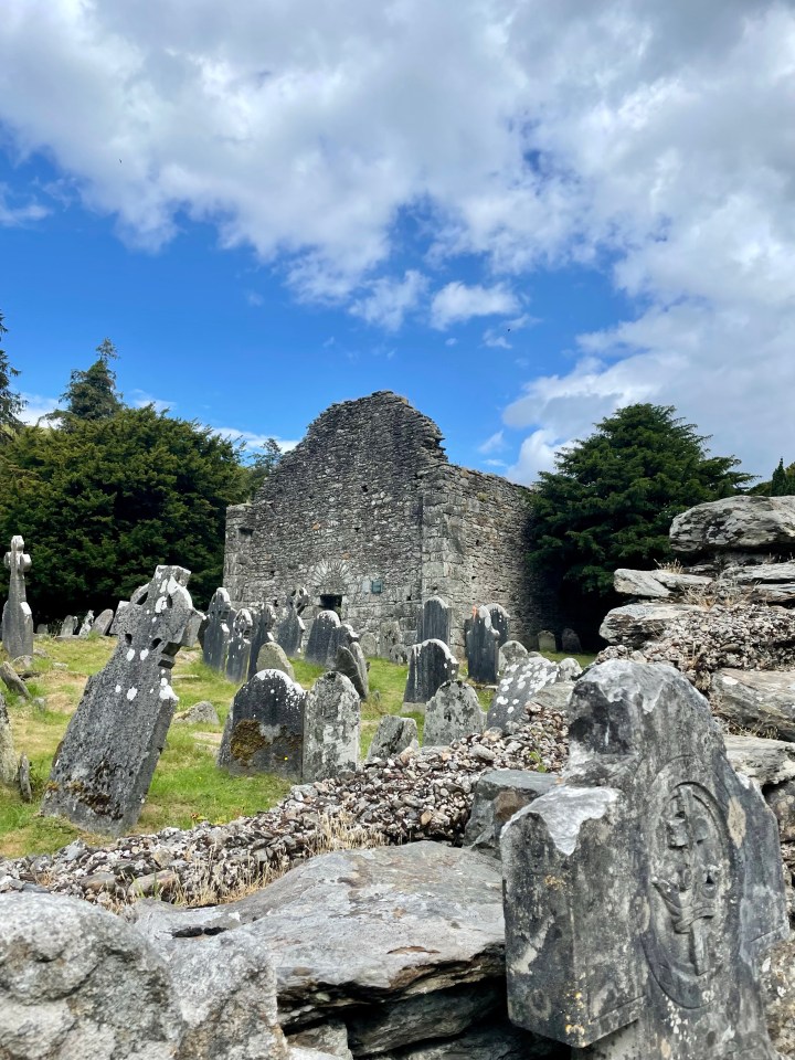 - Glendalough Monastic Ruins: Tucked away in a gorgeous glacial valley surrounding Glendalough Upper Lake, Glendalough is renowned for its (fairly well-preserved) ruins of a monastic settlement founded by St. Kevin in the 6th century. We spent an hour or so learning about the rich history associated with the settlement as we explored the ruins, which included an impressive “round tower”, the stunning Cathedral of St. Peter and St. Paul, and a trail of stone crosses marking the traditional pilgrimage route.