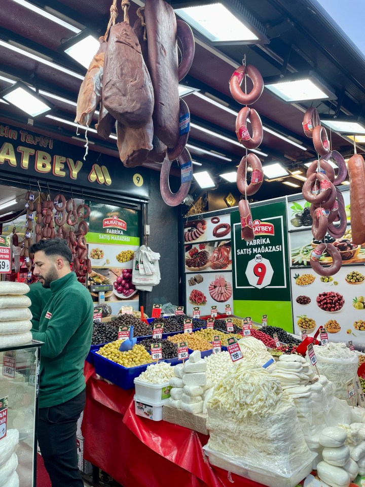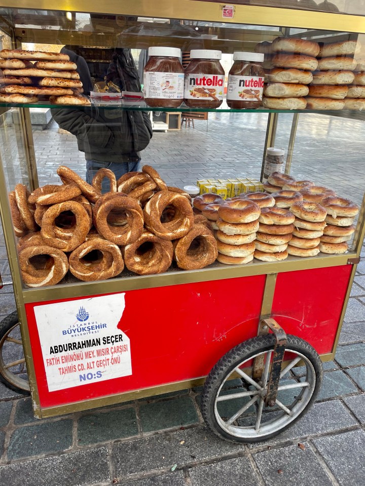 - Mısır Çarşısı (Spice Bazaar): Although it’s considerably smaller than the Grand Bazaar, the covered market originally known as the Egyptian Bazaar has been the center of the spice trade in Istanbul (and therefore, one of the most important spice markets in the world) since it opened in the 17th century as part of the New Mosque külliye (complex). We walked through the market with our street food tour guide, Latif, and walking through the beautiful market and its mountains of fresh spices was truly a sensory overload. We stopped at several shops inside and around the market to buy components for our breakfast, but I wish we would have taken the time to buy fresh spices to bring home with us.