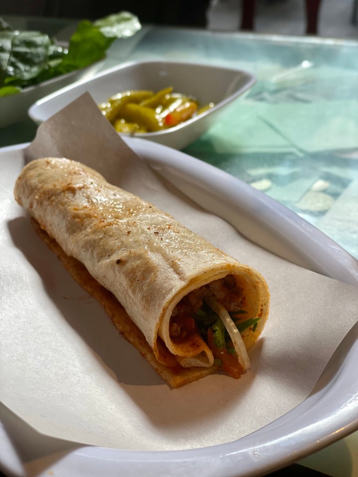 - Kadıköy Tantuni: Tantuni is a popular Turkish street food from the city of Mersin that is made with sliced or minced beef and tomatoes cooked in a giant skillet and served with parsley, raw onions, and a sumac mix as a wrap in the lavash bread known as ‘dürüm‘. It reminded me of an Indian kathi roll (aside from the beef part, of course) and therefore was one of my standout favorites from the tour.