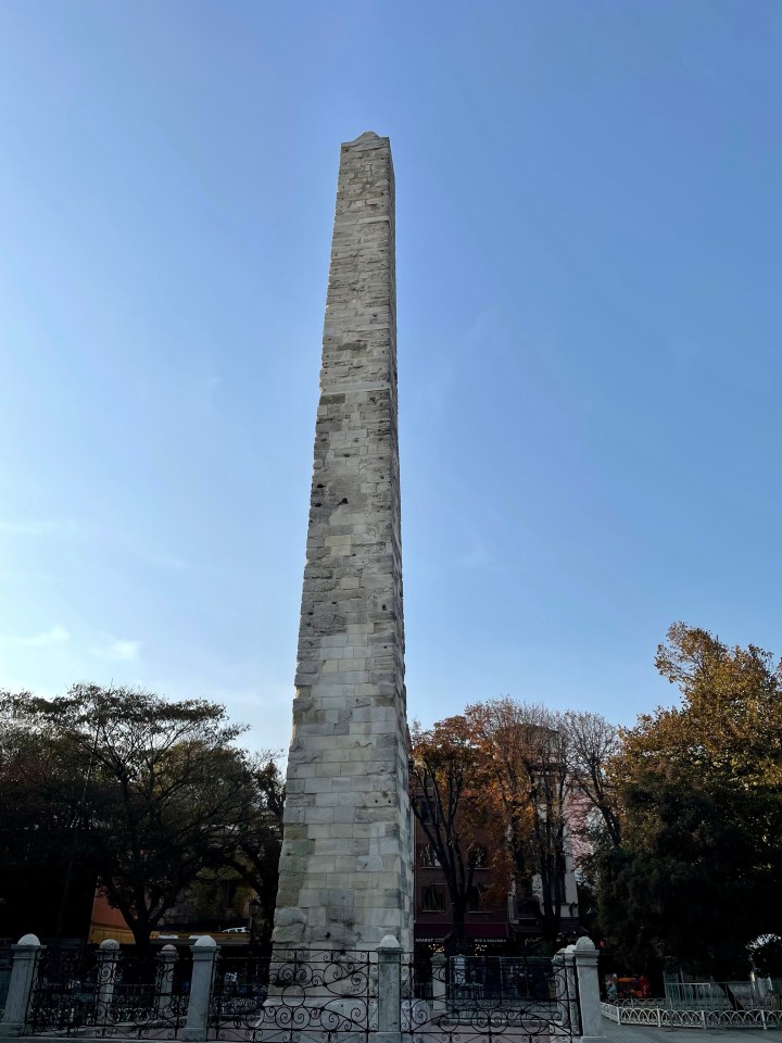 - Sultanahmet Meydanı (Sultanahmet Square): The Hippodrome of Constantinople, originally constructed when the city was called Byzantium, was rebuilt by Constantine the Great after he conquered (and renamed) the city in the 4th century as a racetrack for chariot racing and horse racing. Constantine and his successors added to its importance over the centuries by installing artwork and monuments from across the empire in the center, which is called the spina. The racetrack is more than six feet below the present-day surface, but the surviving monuments (the Serpentine Column, part of a bronze sacrificial tripod originally constructed in Delphi by the ancient Greeks in 478 BC; the Obelisk of Theodosius, an Ancient Egyptian obelisk erected at the great temple of Karnak during the reign of Pharaoh Thutmose III between 1479–1425 BC and brought to Constantinople by Theodosius the Great); and the Walled Obelisk, a Roman monument constructed at an unknown point between the 3rd and 8th centuries to mirror the Obelisk of Theodosius) are on display in excavated pits throughout the square. It was really cool to see such an impressive blend of monuments from dramatically different ancient cultures assembled together in the city center — a true visual representation of the city’s unfathomably long and important history.