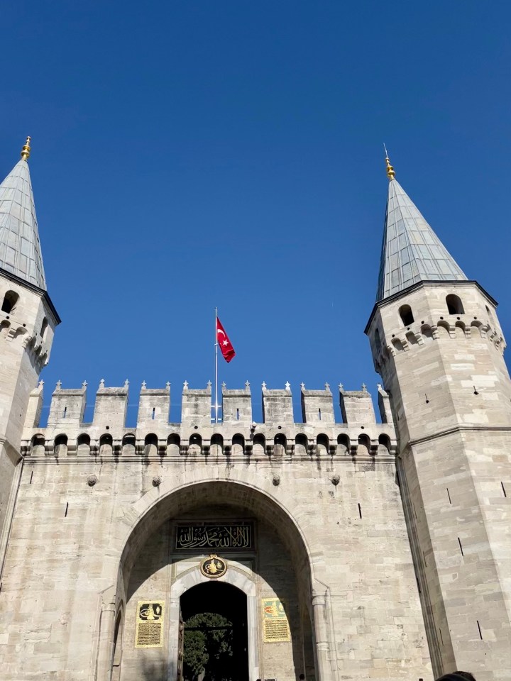 - Topkapı Sarayı (Topkapi Palace): This gigantic palace complex served as the administrative center of the Ottoman Empire from the 1460s until the mid-19th century and was the main residence of its sultans until the 17th century. After the end of the Ottoman Empire in 1923, Topkapi Palace and its sprawling gardens became a museum that is now one of the city’s most popular tourist sites. Unfortunately, I got our tickets and timing mixed up so we only were able to walk around the gardens and the exterior of the palace, which was disappointing because I had been quite excited to see the Ottoman Imperial Harem and the treasury where the Spoonmaker’s Diamond and the Topkapi Dagger are on display.