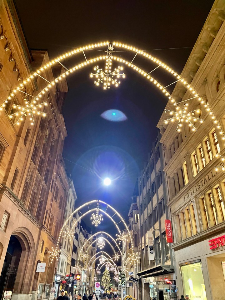 - Adväntsgass im Glaibasel: The third “official” part of the Basel Christmas Market was actually located across the river from the Old Town on Rheingasse in Kleinbasel. This area was much more lowkey and focused primarily on food — it was really cool and well worth the walk across the Rhine, but it was more of a food truck street with festive decorations vs. a traditional Christmas market.