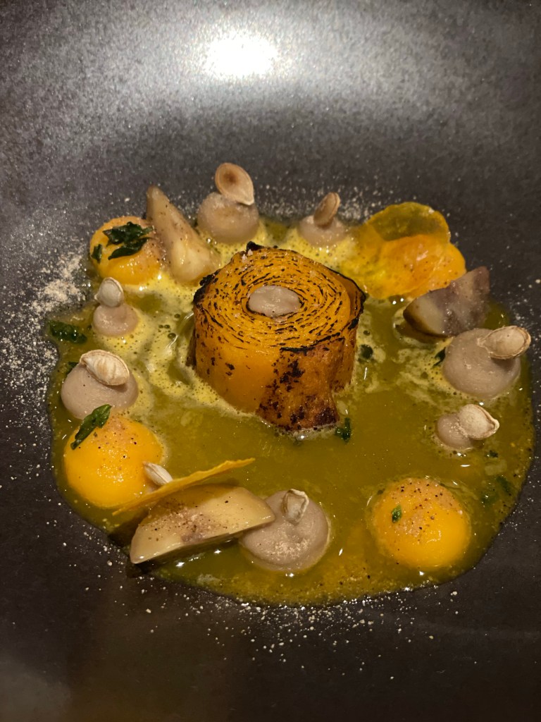 - La Table de l’Alpaga: The dinner we had at the more intimate of the two restaurants at the lovely L’Alpaga hotel on our final night in town was easily the highlight of our trip and one of the best dining experiences we’ve had to date. The six-course tasting menu was €170 per person, which was actually quite reasonable considering its two Michelin stars, and the service was absolutely exquisite. Everyone was so friendly and the presentation was flawless—the waitstaff leveraged a giant wooden table in the center of the room as a prep table for serving each course, which was a really interesting touch that took the experience to the next level.