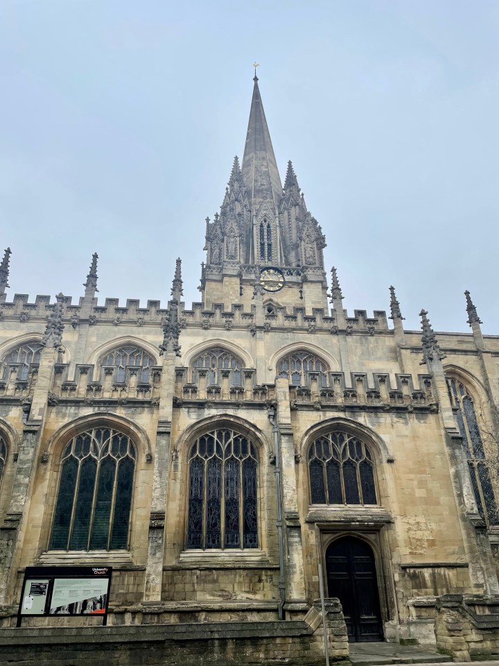 - University Church of St. Mary the Virgin: With its 13th-century spire looming over the city center on Radcliffe Square and High Street, St. Mary’s is an iconic part of the Oxford skyline as well as the university’s history. It was home to the university’s original library and also hosted its graduation ceremonies until the Sheldonian Theatre was built. We toured the inside of the building, but we didn’t take the time to climb up its tower, which is supposed to have one of the loveliest views in the city.