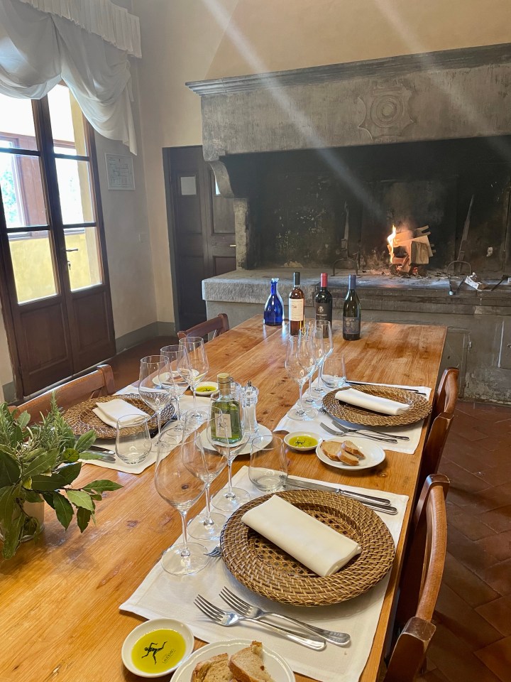 - Castello di Nipozzano: Just a half-hour drive from Florence, the incredible Castello di Nipozzano is the oldest of the estates belonging to the legendary Frescobaldi family, which has been producing wine in Tuscany since 1308 and is one of the largest and most influential winemakers in the region. The property is characterized by an 11th-century castle overlooking the Arno that was originally one of the family’s summer homes and now houses the family’s truly impressive private cellars containing wines dating back to the 19th century, a small portion of what remained after Nazi looting and destruction during World War II. We had a lovely tour of the property and production facilities, followed by an incredible lunch and three-wine tasting in a private room containing a beautiful and gigantic 18th-century fireplace.