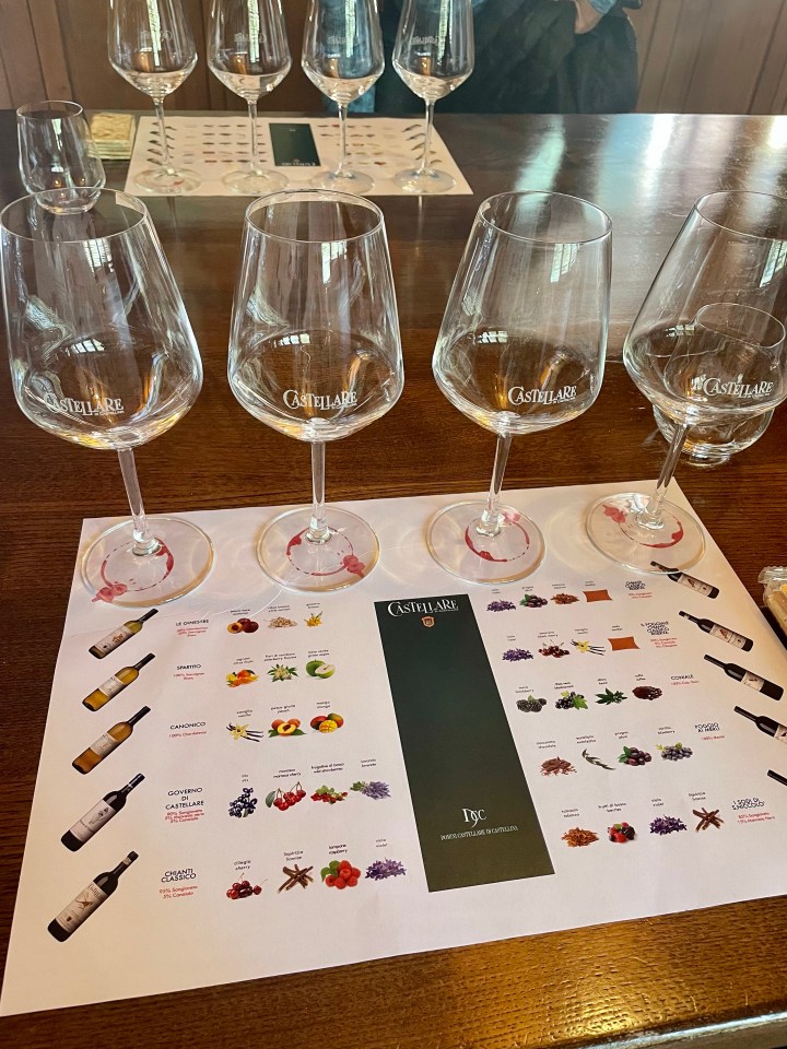 - Castellare di Castellina: Our first stop in Chianti Classico proper was at the utterly charming Castellare di Castellina, a 70-acre estate in the commune of Castellina that is known for its commitment to only growing and producing local grape varietals, as well as its unique watercolor labels featuring local birds and flowers. Our private tour and five-wine tasting lasted an hour (and was just €25 per person), which made for a perfect pit stop on the way to our hotel.