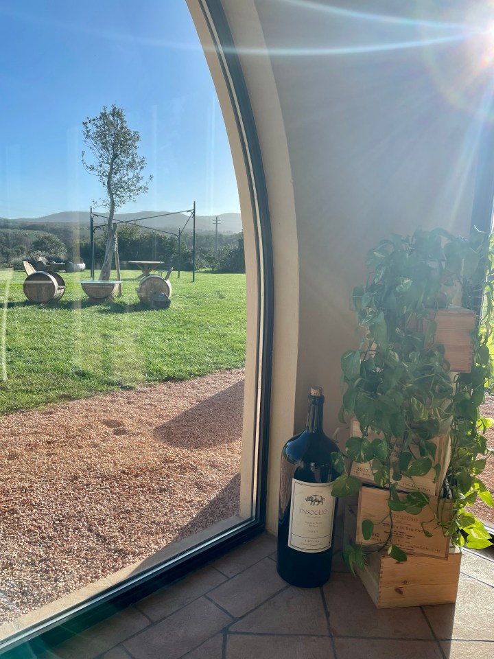 - Podere Il Castellaccio: A smaller and relatively new wine producer, Podere Il Castellaccio primarily grows local Sangiovese, Pugnitello, and Foglia Tonda grapes, which is unusual for the area but resulted in some of the best wine we had on our entire trip. The gorgeous property had breathtaking views of the medieval hilltop village of Castagneto Carducci and the ocean in the distance, and we had an absolutely wonderful tour, tasting, and conversation with Enrica, who co-runs the estate her husband’s family has owned since the 1960s. There were also several recently renovated apartments available for guests that looked just as fantastic as the rest of the property.