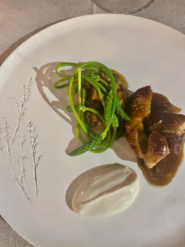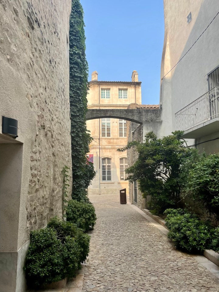 - Restaurant L’Oustalet Maianen (Maillane): We had another fantastic dinner at a lovely family-run restaurant with a Michelin Bib Gourmand designation in Maillane, a charming town just a few miles outside Saint-Rémy that is best known as the birthplace of the 19th-century poet Frédéric Mistral. We sat at a table in the courtyard and enjoyed the perfect weather along with the excellent €68 tasting menu of delicate, creative Provençal dishes.