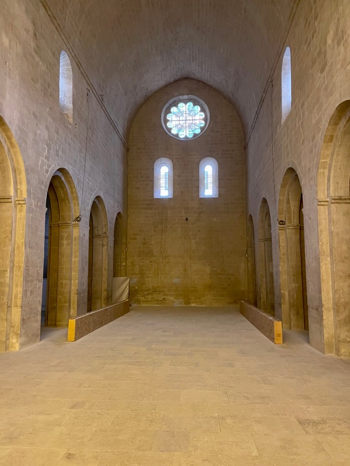 - Abbaye Notre-Dame de Sénanque (Gordes): One of the most beautiful places we visited in Provence was an ancient Cistercian abbey on the northern outskirts of the equally lovely village of Gordes. The abbey church, consecrated in 1178, has remained remarkably intact over the centuries and is still home to a small community of monks. Visitors must remain silent while in the abbey, which made the experience quite peaceful and uniquely powerful despite the hordes of people surrounding us. The church would have been worth a visit on its own, but the main attraction for visitors during the summer months is the scenery—the magnificent stone abbey is nestled among picture-perfect fields of lavender in a secluded glen.