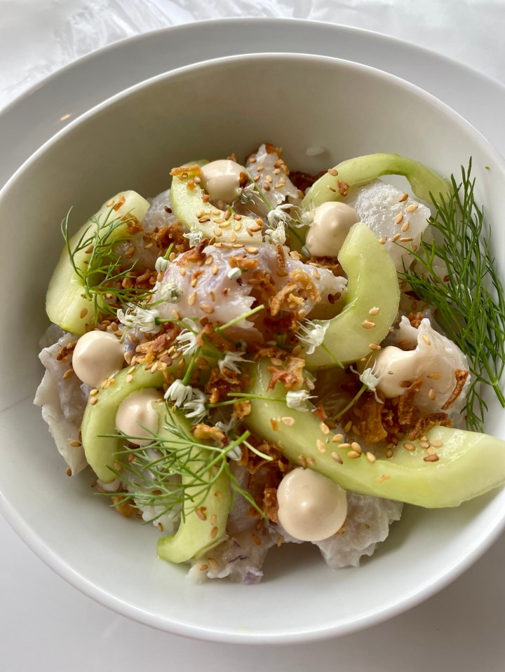 - Restaurant L’Arazur (Antibes): We had an amazing dinner at this tiny restaurant tucked away on a side street in the historic part of Antibes. The chef-owned restaurant focused on fresh, seasonal, and simply prepared dishes with a heavy focus on vegetables and locally caught seafood, and each course of the 80€ tasting menu was absolutely fantastic.
