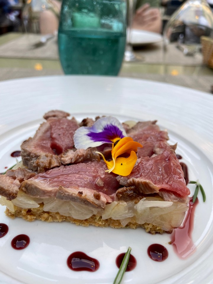 - Le Saint Hubert (Saint-Saturnin-les-Apt): Le Saint Hubert, a purple-shuttered hotel and restaurant located just past Gordes in the picturesque town of Saint-Saturnin-les-Apt, looked straight out of a movie set in Provence. We had a lovely lunch on the terrace, which offered unparalleled panoramic views of the Luberon landscape to complement an exquisite menu of traditional and fresh French dishes.