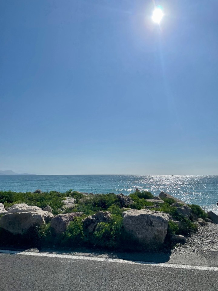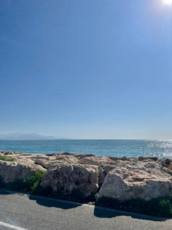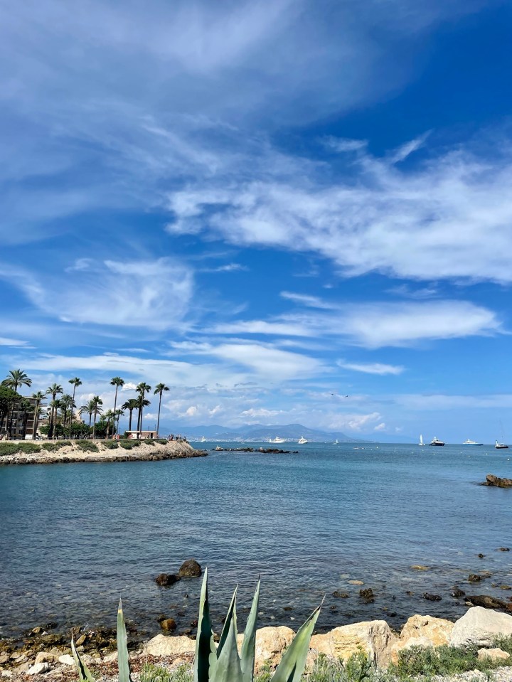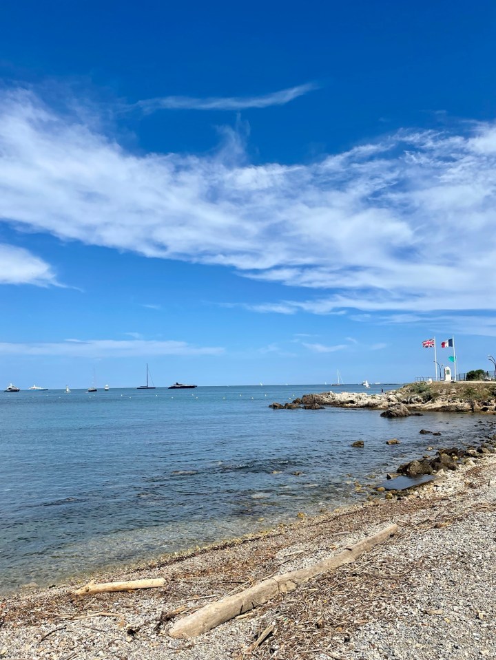 - Royal Beach Club (Antibes): The prestigious Royal Antibes Hotel owns a private beach area across from the main hotel in Antibes. We were too late in the day to rent chaise lounges on the actual beach, but we had a few cocktails at the beach bar and restaurant. The bar itself wasn’t anything too special, but the panoramic ocean views and buzzy atmosphere made the overpriced drinks worthwhile.
